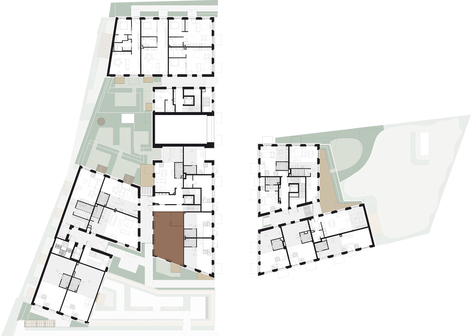 Butai parduodami be pertvarų. Pateikiamas galimo įrengimo pavyzdys.