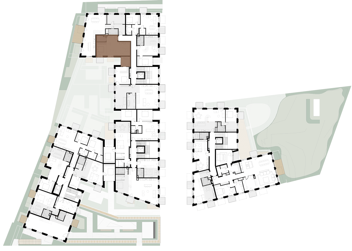 Butai parduodami be pertvarų. Pateikiamas galimo įrengimo pavyzdys.