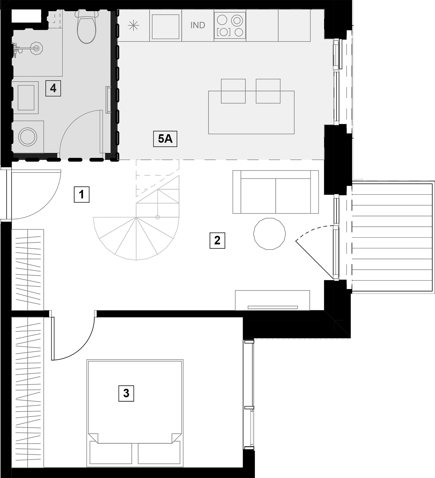 Butai parduodami be pertvarų. Pateikiamas galimo įrengimo pavyzdys.