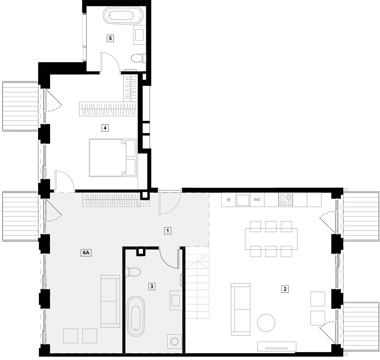 Butai parduodami be pertvarų. Pateikiamas galimo įrengimo pavyzdys.
