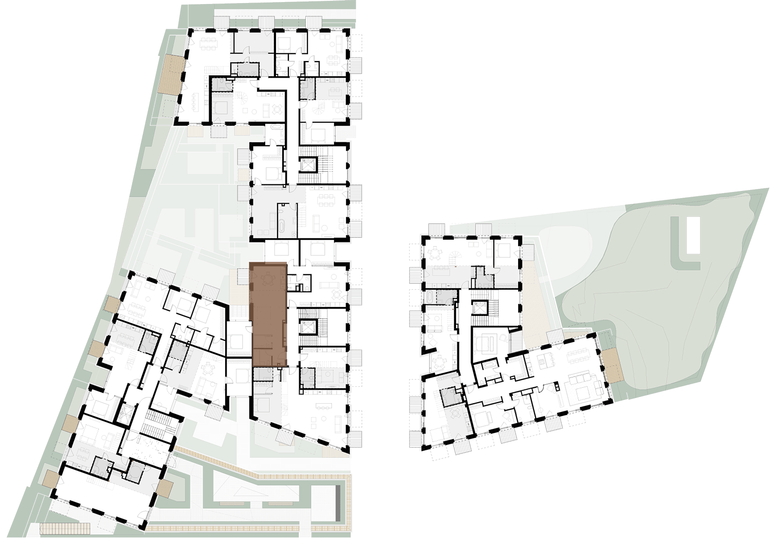 Butai parduodami be pertvarų. Pateikiamas galimo įrengimo pavyzdys.