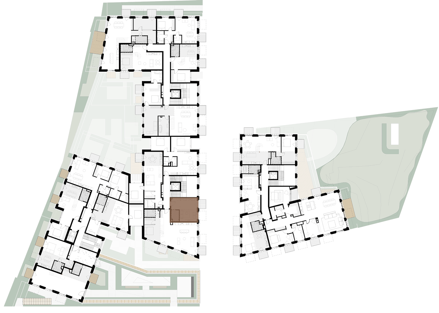 Butai parduodami be pertvarų. Pateikiamas galimo įrengimo pavyzdys.