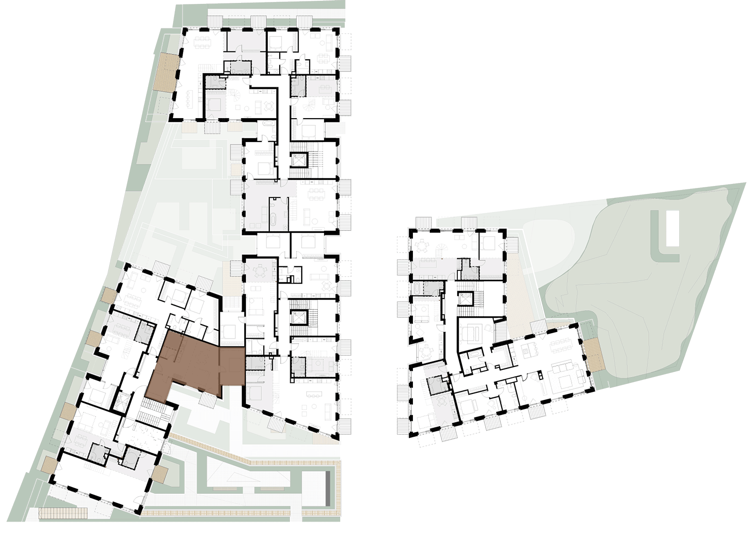 Butai parduodami be pertvarų. Pateikiamas galimo įrengimo pavyzdys.