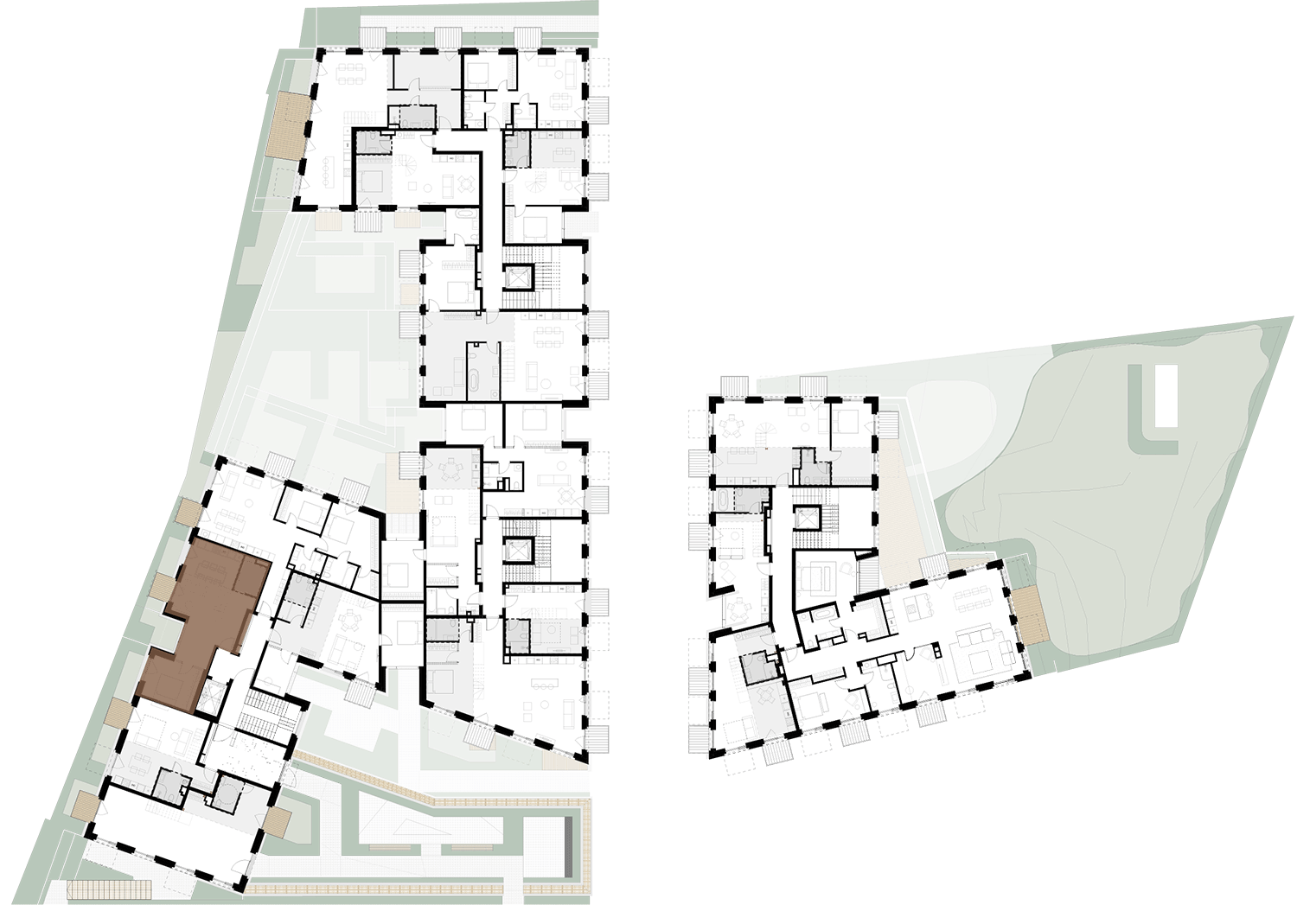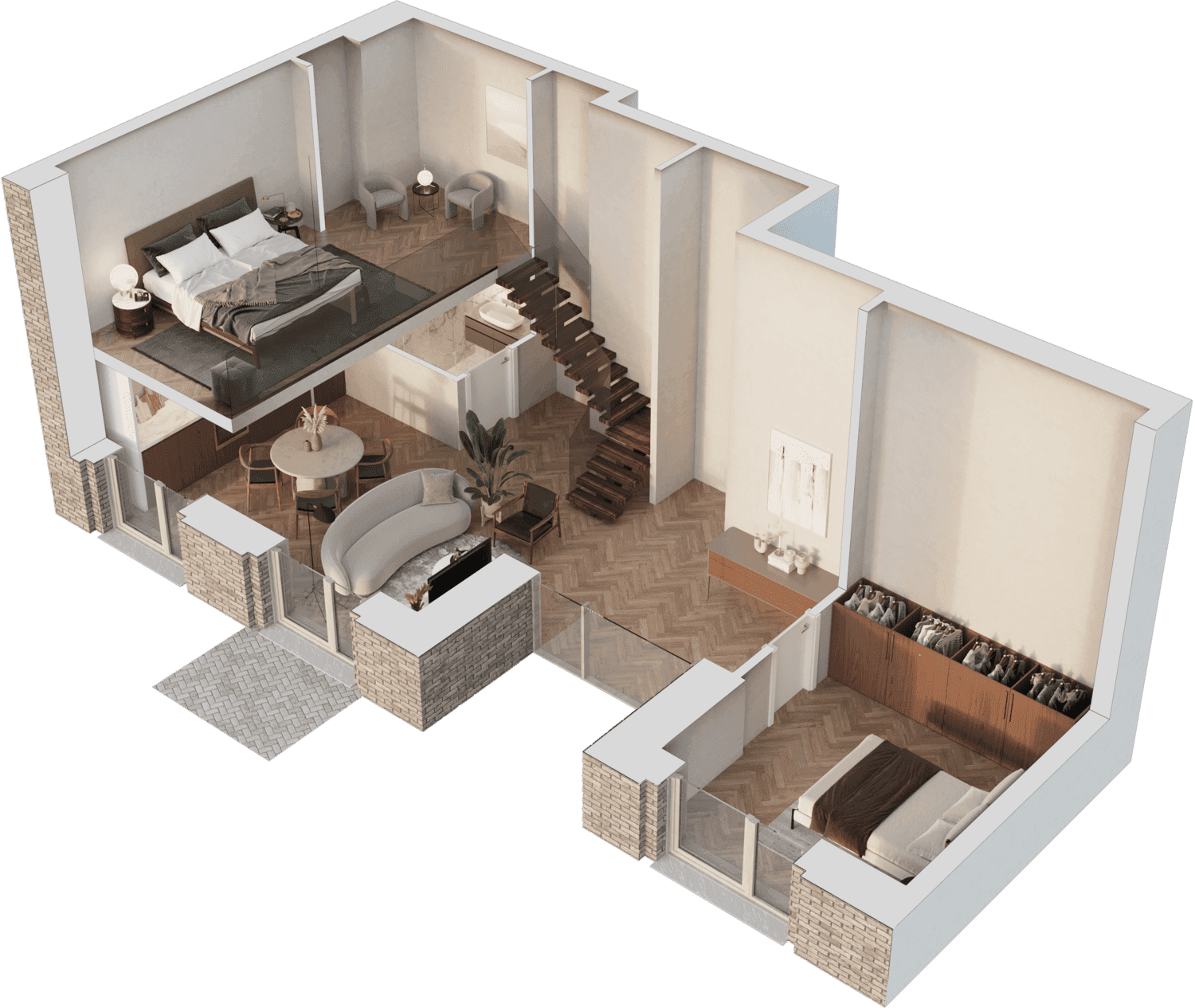 Butai parduodami be pertvarų. Pateikiamas galimo įrengimo pavyzdys.