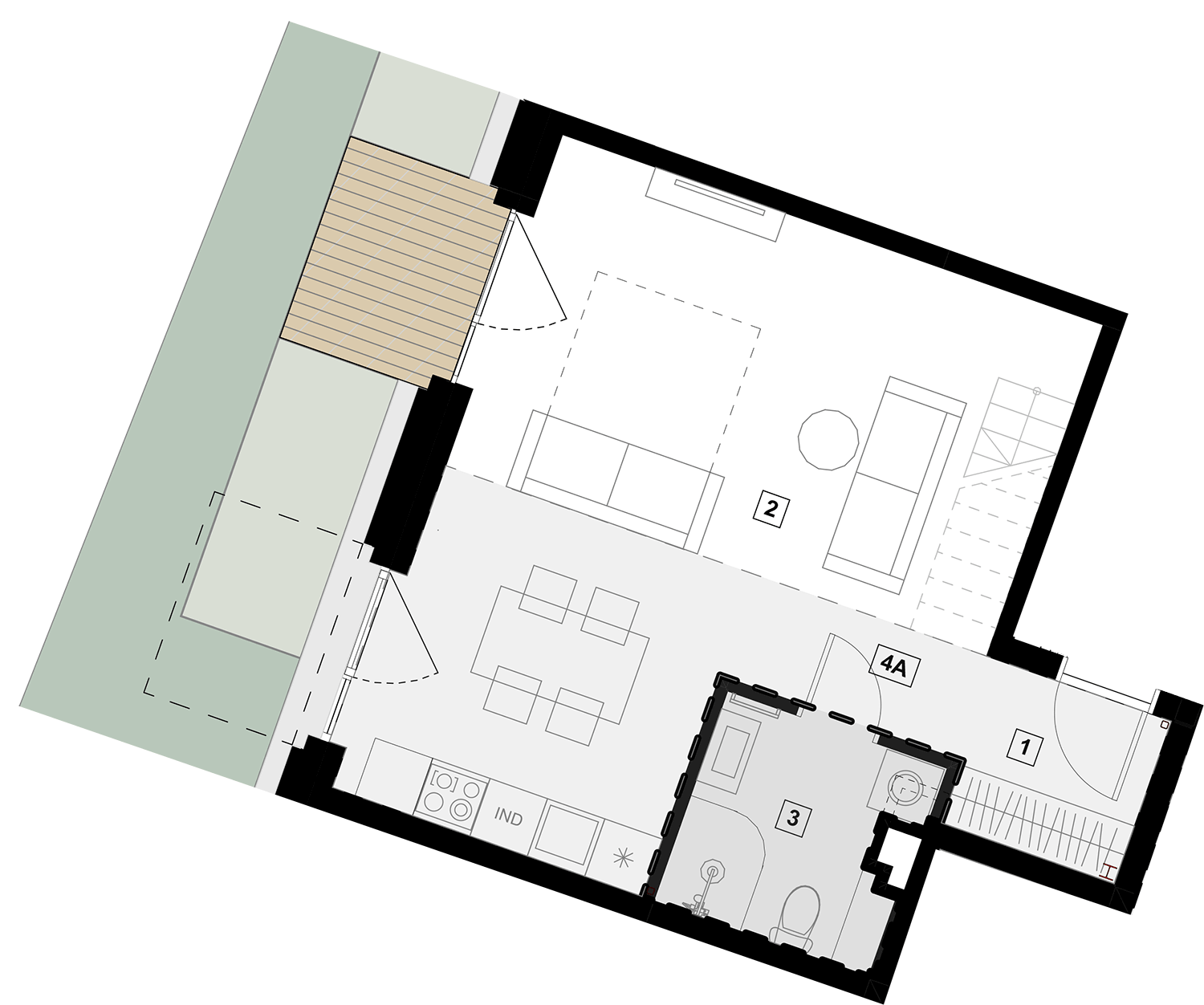 | 2 | Svetainė/valgomasis/virtuvė | 33.81 m² |