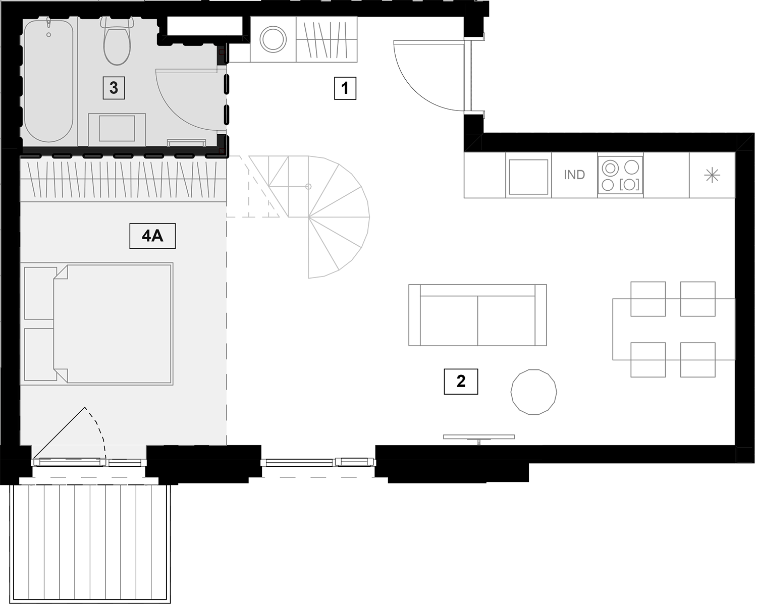 Butai parduodami be pertvarų. Pateikiamas galimo įrengimo pavyzdys.