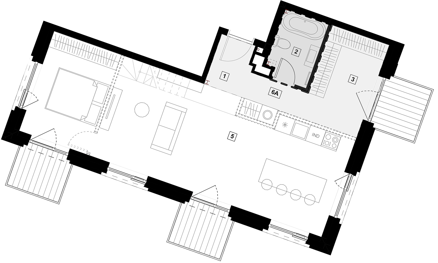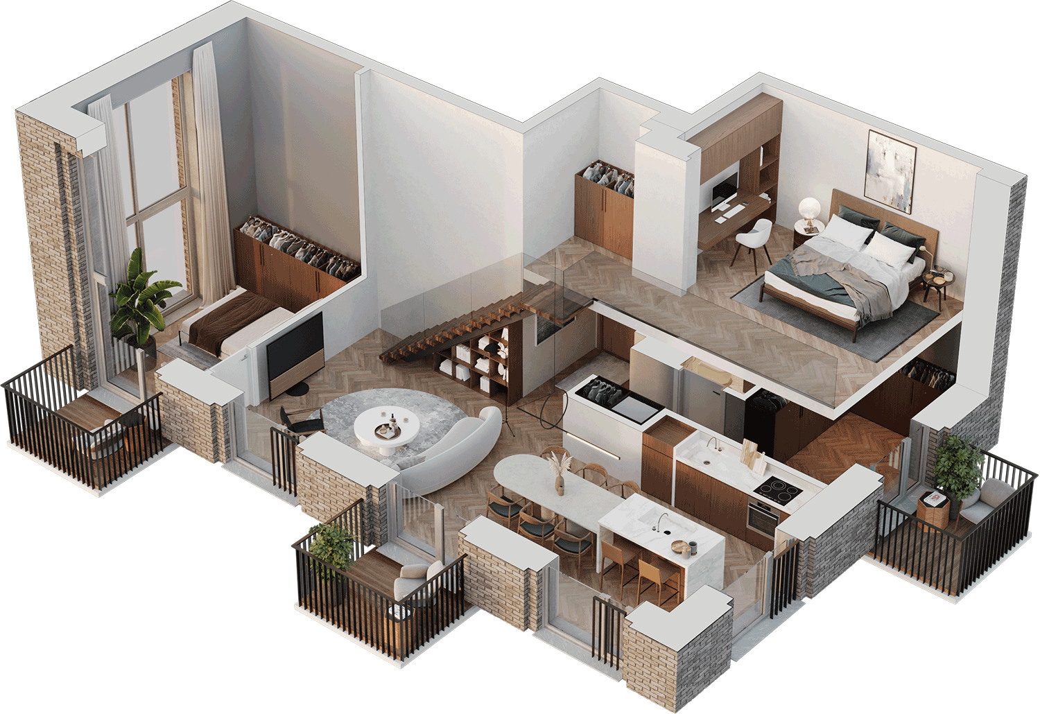 Butai parduodami be pertvarų. Pateikiamas galimo įrengimo pavyzdys.
