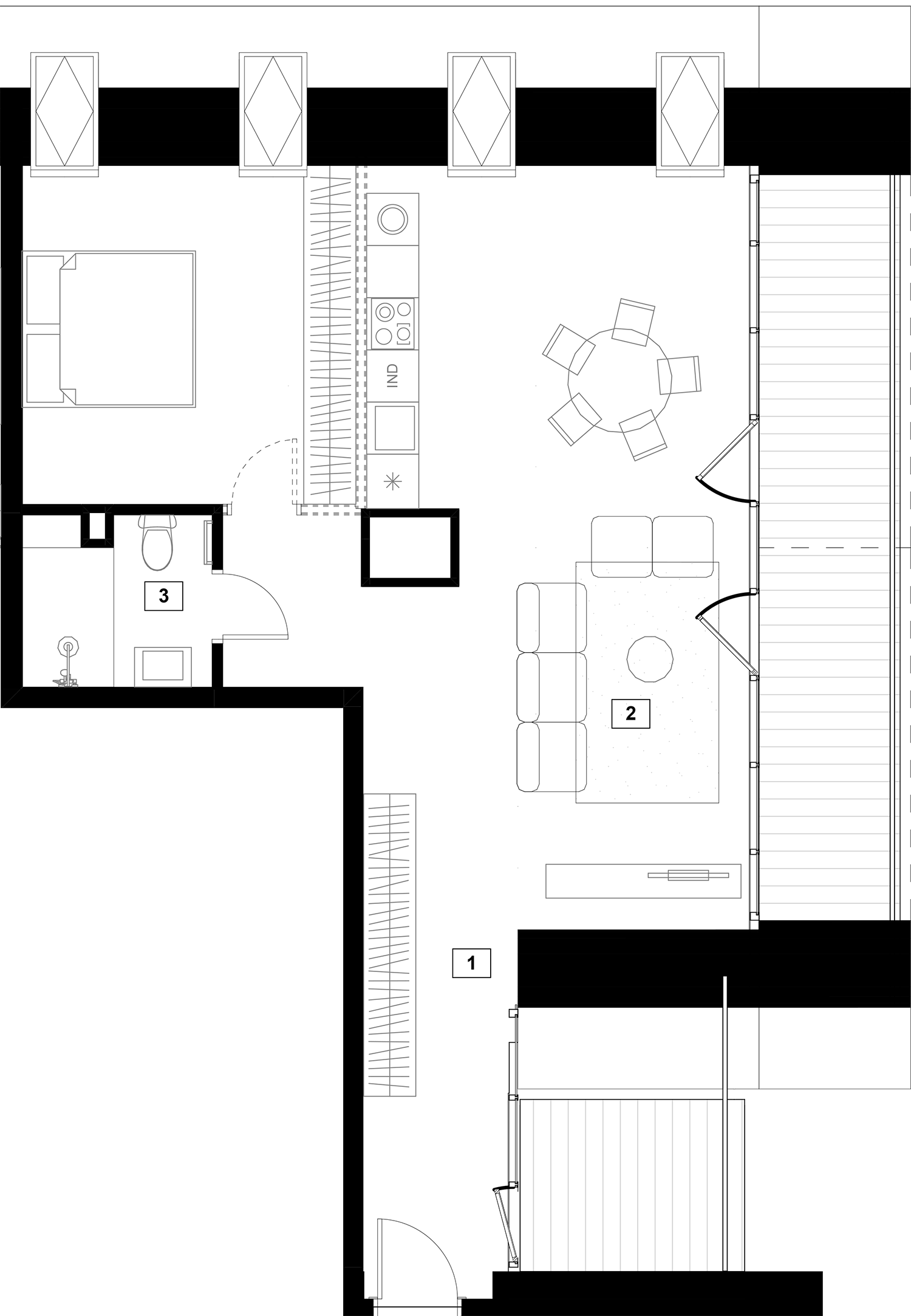 Butai parduodami be pertvarų. Pateikiamas galimo įrengimo pavyzdys.