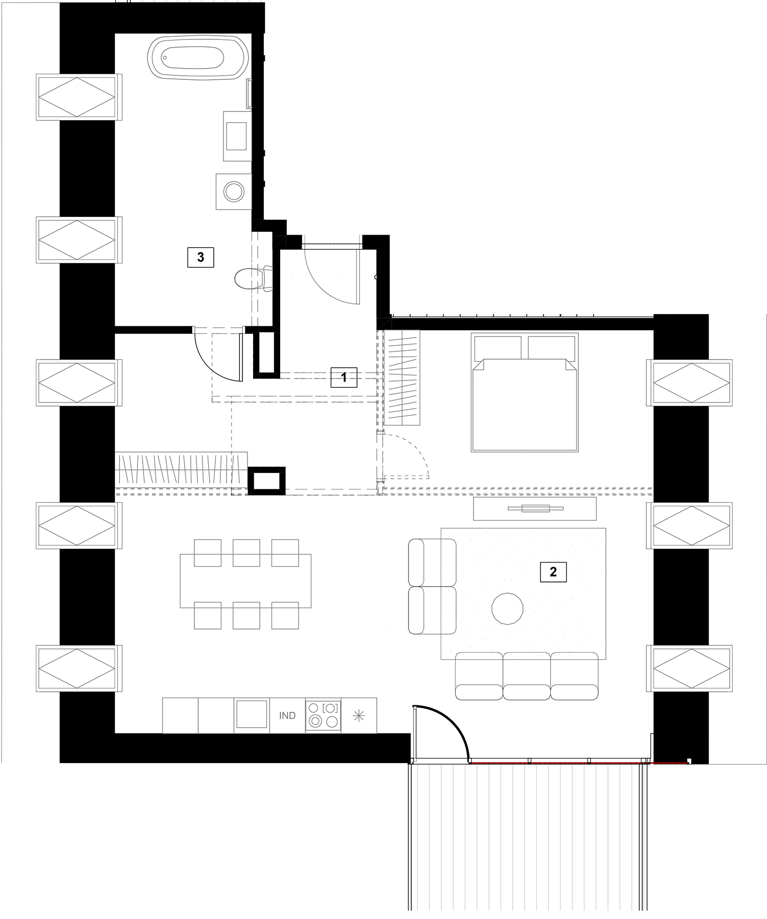 | 2 | Svetainė/valgomasis/virtuvė | 50.1 m² |