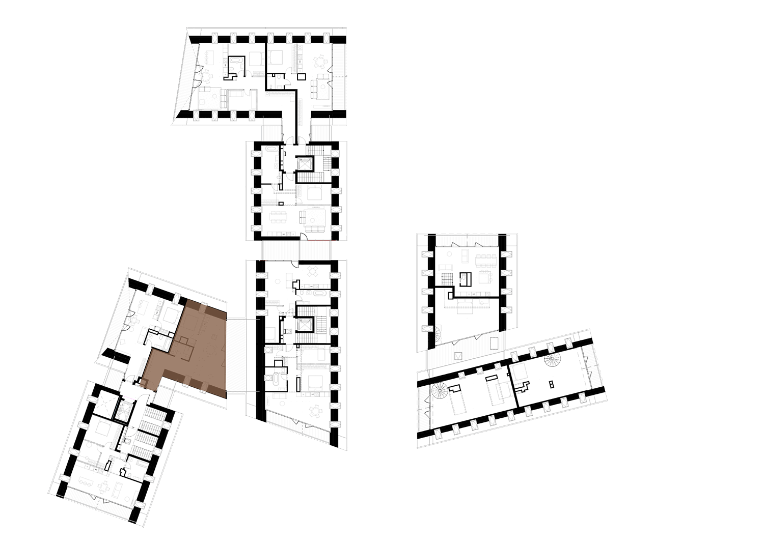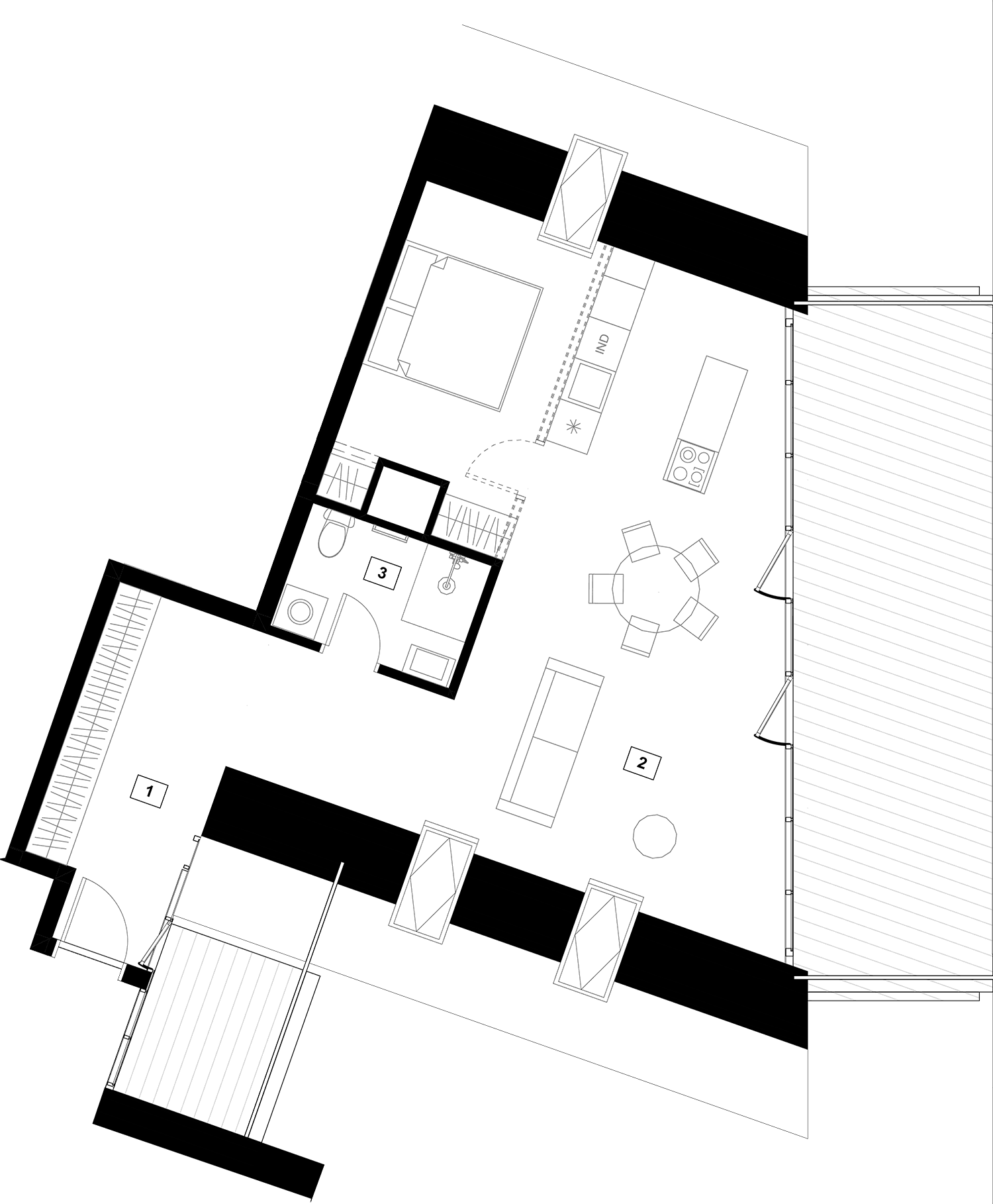 Butai parduodami be pertvarų. Pateikiamas galimo įrengimo pavyzdys.