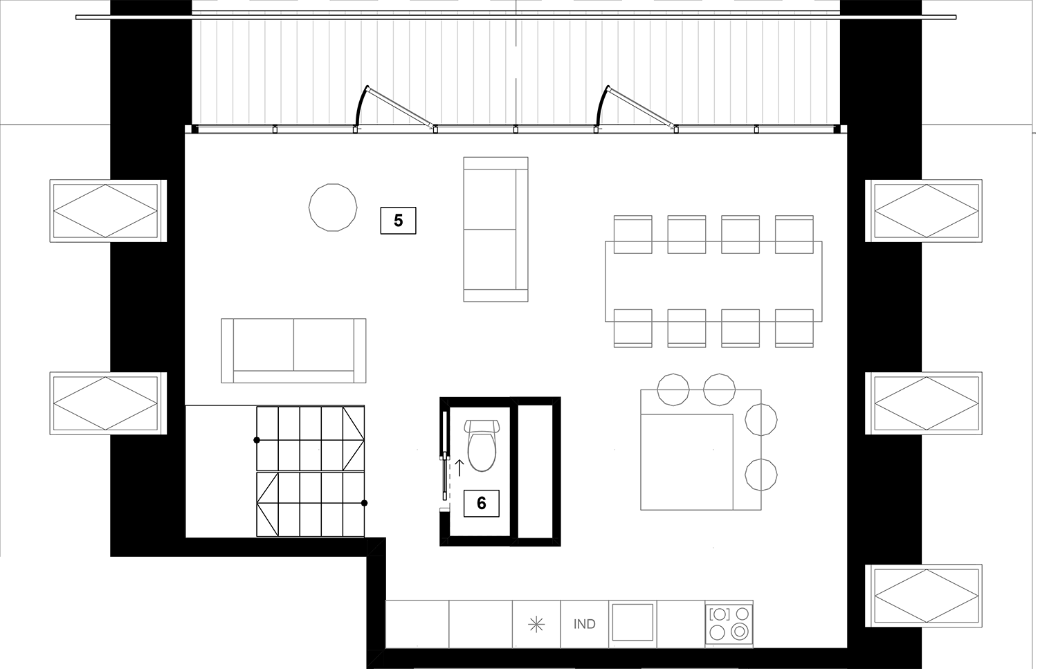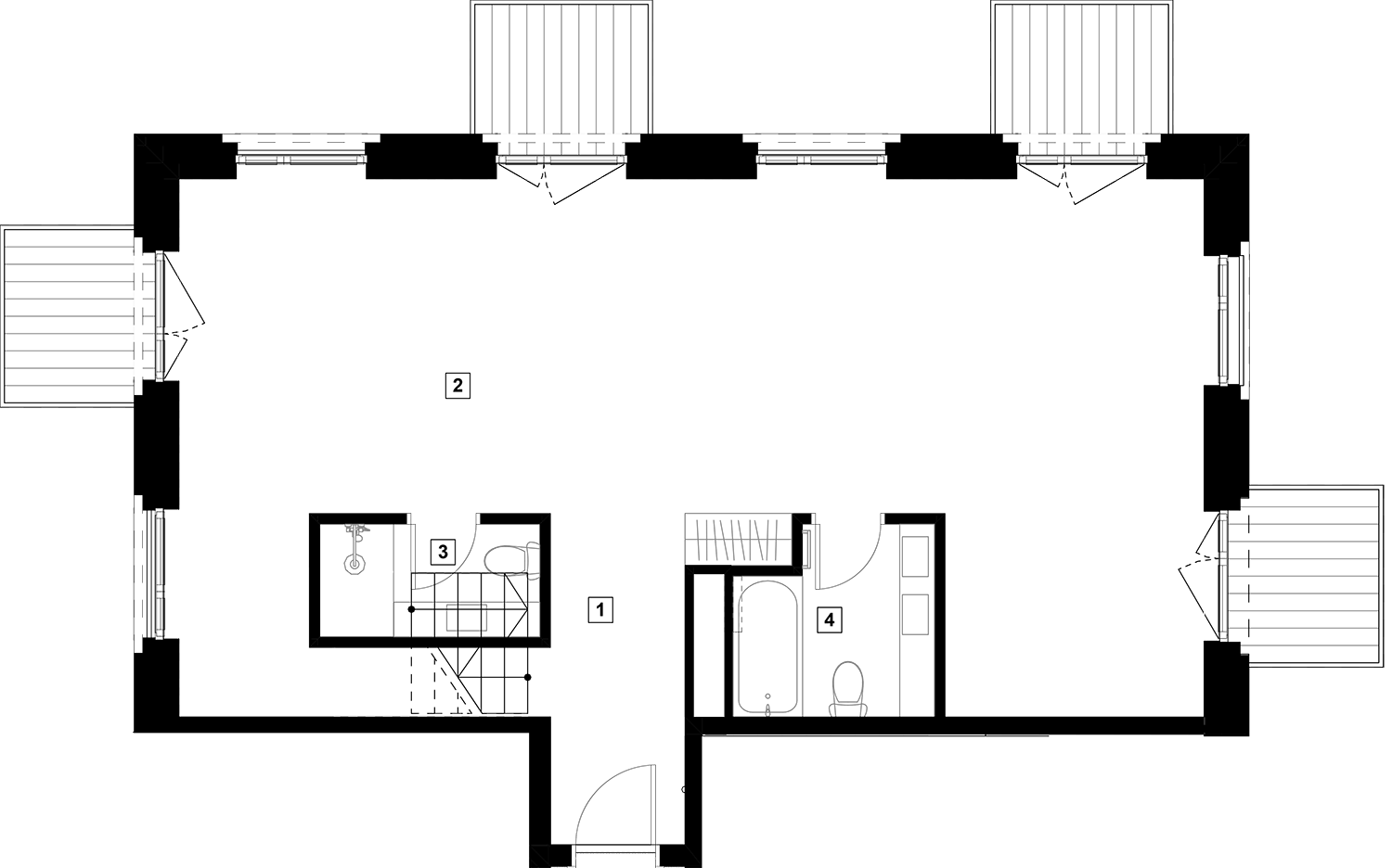 Butai parduodami be pertvarų. Pateikiamas galimo įrengimo pavyzdys.