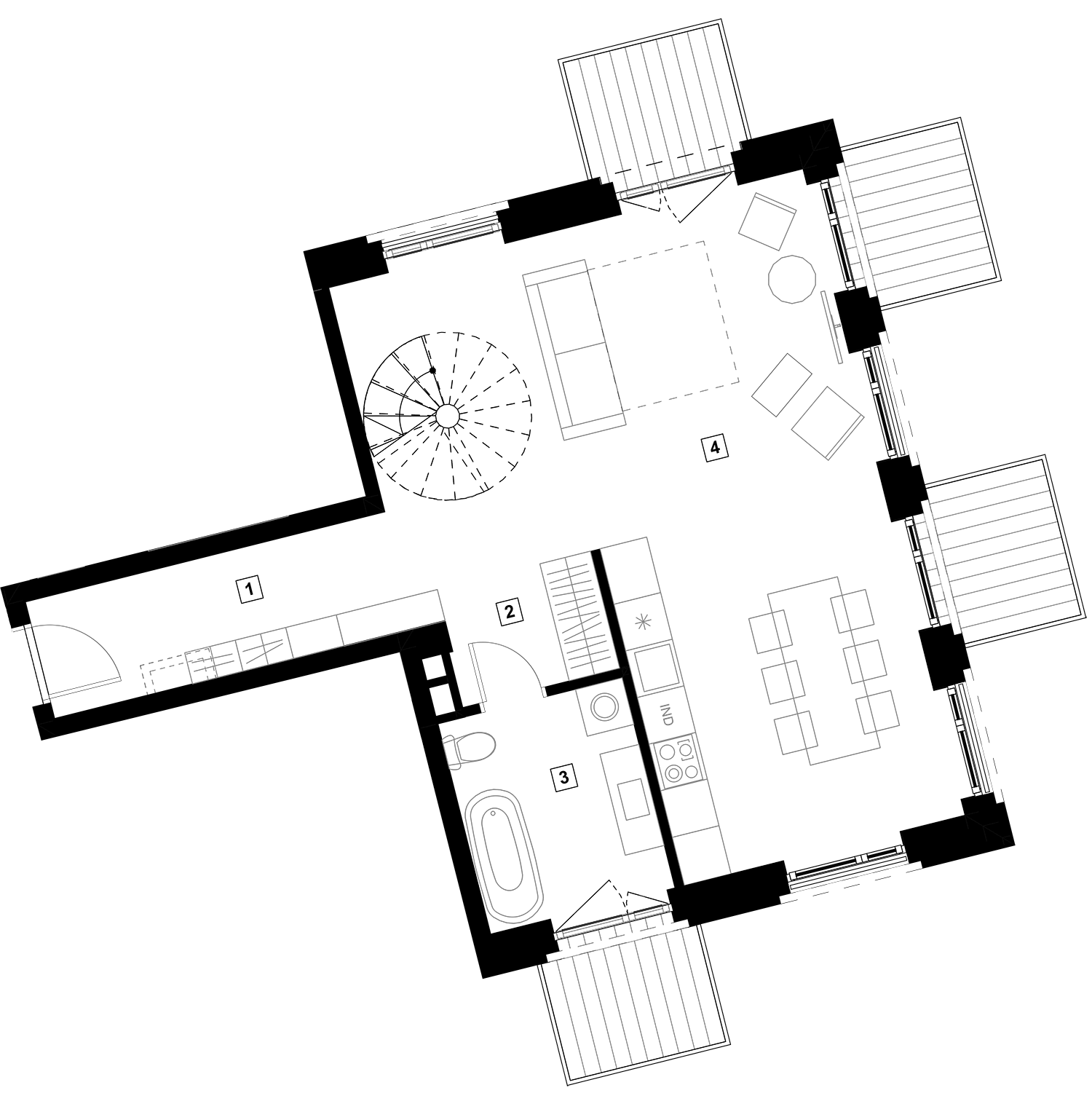 Butai parduodami be pertvarų. Pateikiamas galimo įrengimo pavyzdys.